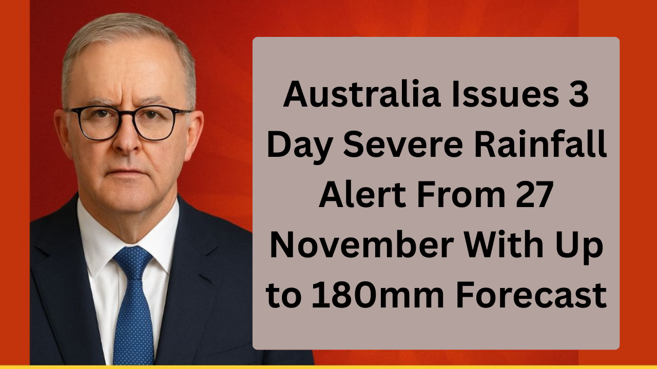Australia is bracing for a dangerous burst of weather as authorities issue a severe three day rainfall alert across multiple states starting 27 November. Forecast models show a slow moving system building strength over central and eastern regions with the potential to dump up to 180 millimetres of rain in some districts. Emergency services are preparing for flooding and rapid water rise as saturated catchments make conditions more unpredictable than usual.